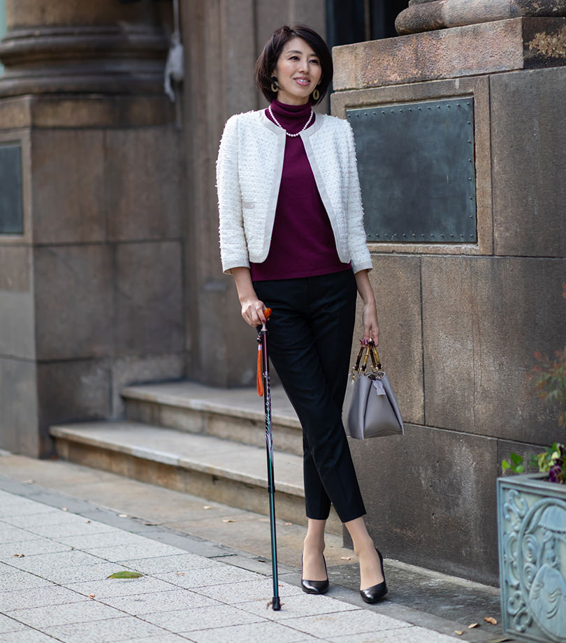 高級感があり、金属に彫り込まれたデザインがおしゃれ。折りたたみ杖はバッグにも収納できて便利。